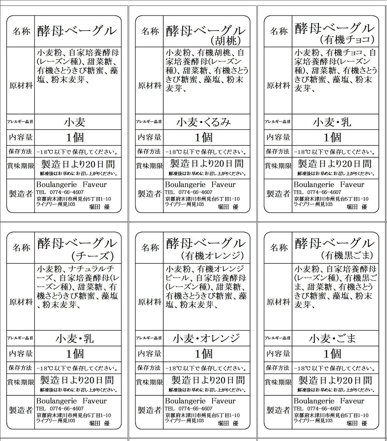 酵母ベーグル5種